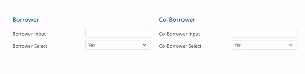 And here is an example of how Bootstrap 5 tab switch can be implemented in a real-world project. You can see that in the desktop version, there are two columns: borrower and co-borrower. However, when the screen size is decreased to mobile mode, the two columns are replaced with a tabbed interface. This is achieved using the d-lg-none class in Bootstrap 5, which makes the nav element and its child elements visible only on smaller screens.